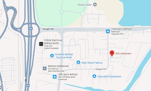 JHC Belfast 145-151 Dargan Crescent, Belfast, BT3 9JP ✆ 028 90777912 ✉ info@jhchardware.com Opening Hours MON - THURS 7.45am - 4.10pm FRI 7.45am - 2.15pm Closed for Lunch 12.50 - 1.30